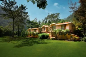 Corbett River Creek Resort is a luxury 4-star property located in Marchula Village on the banks of the Ramganga River, bordering Jim Corbett National Park. It features 32–35 well-appointed rooms and villas, including options with private pools, all offering scenic mountain and river views.